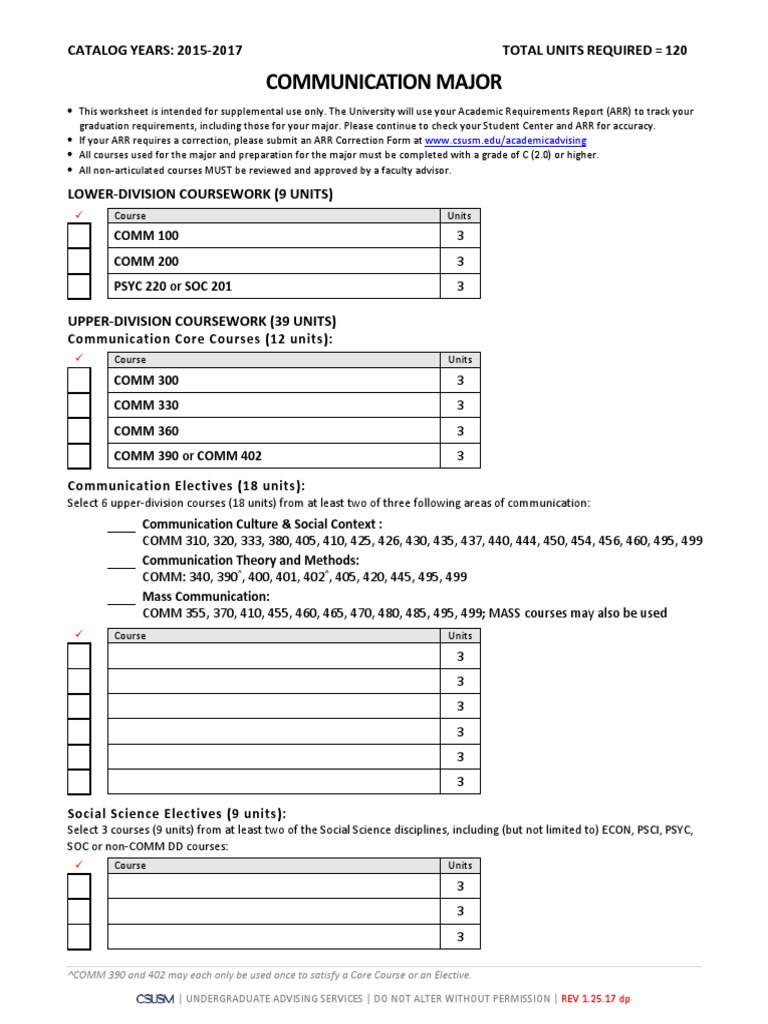 Communication Major Catalog Years 2015 2017 Total Units Required 120
