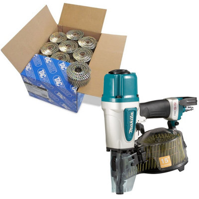 (EZ) Makita Pneumatic 13/4” 15 Degree Coil Roofing Nailer Kraft