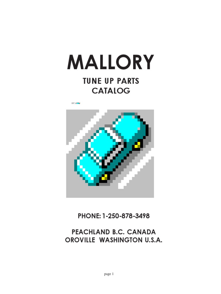 Mallory Tune Up Parts Catalog PDF Ignition System Distributor