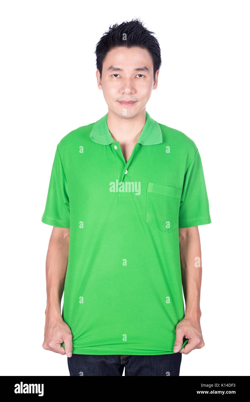 A man wearing a green polo shirt that says quot t shirt quot Premium