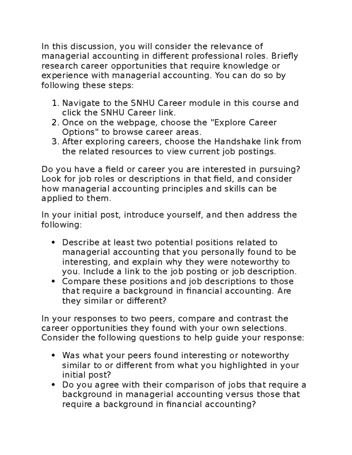 SNHU ACC 202 Discussion Wk 1 In this discussion, you will consider
