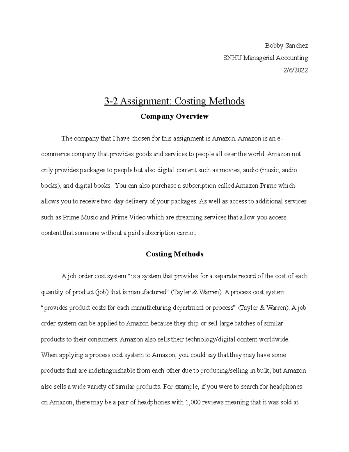 32 Assignment MA about the overview of Amazon Bobby Sanchez SNHU