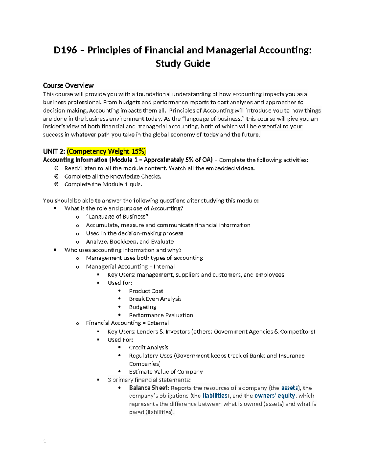 ACC201 Module 1 Chapters 12 SNHU ACC201 MODULE 1 CHAPTERS 1