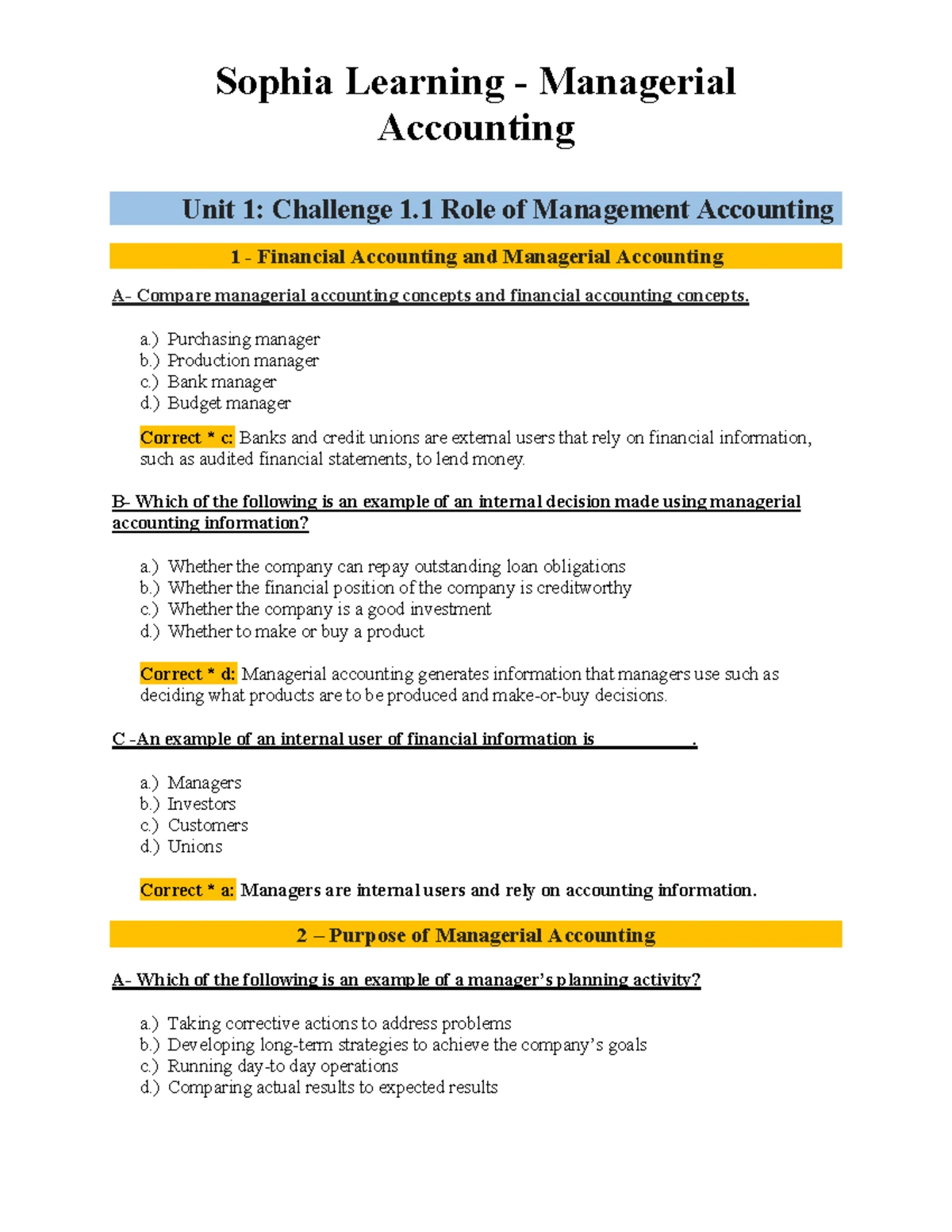 Chapter 1 Managerial Accounting MCQ Chapter 1 Managerial Accounting