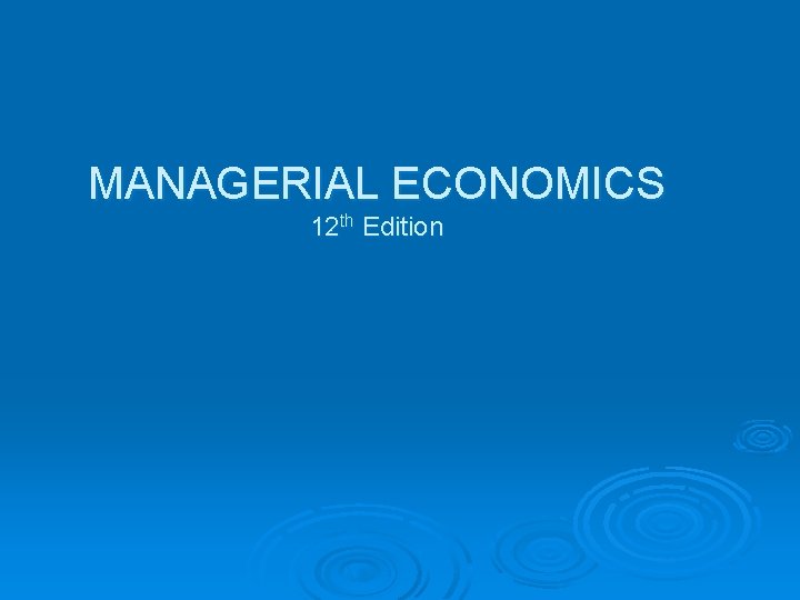 MANAGERIAL ECONOMICS 12 th Edition Nature and Scope