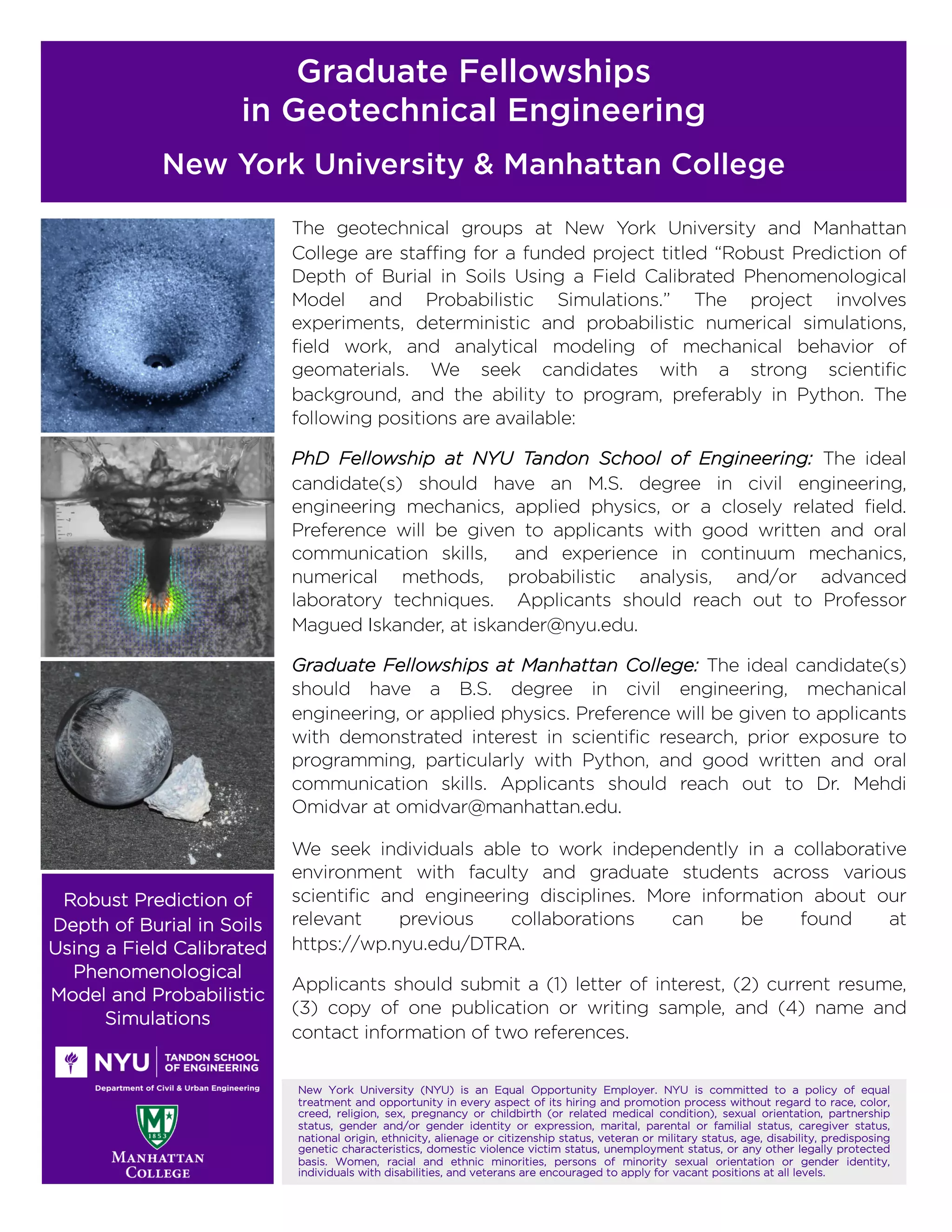 Graduate Research Assistantship in Geotechnical Engineering, NYU