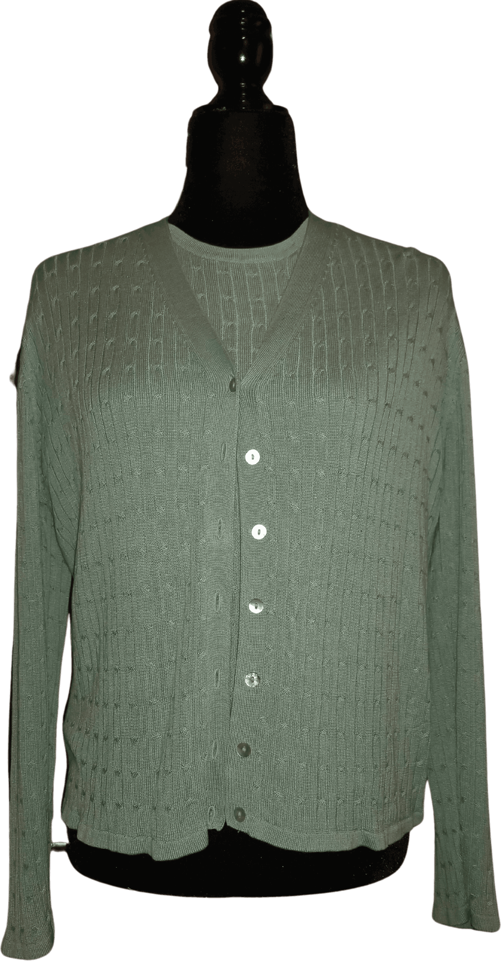 Vintage Silk Sage Green Shirt and Cardigan Set by Mark, Fore, And