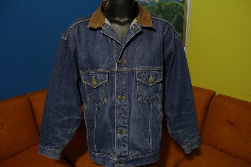 Marlboro Country Store Vintage Blue Denim Leather Collar Jean Jacket S