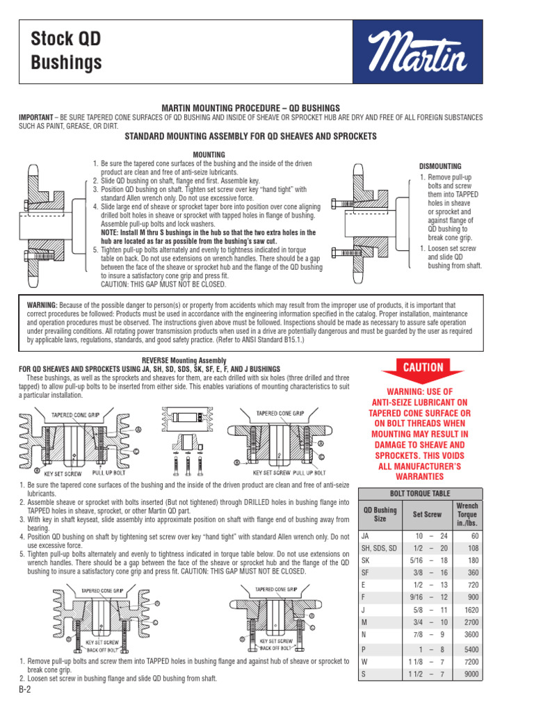 Martin Catalog QD Bushing SDS 2" Buy Taper Bushing, sprockets, SDS