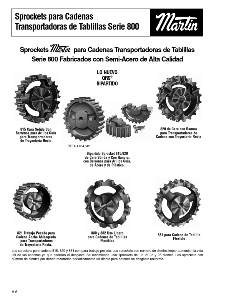Sprockets Martin para Cadenas Transportadoras de Tablillas (Martin