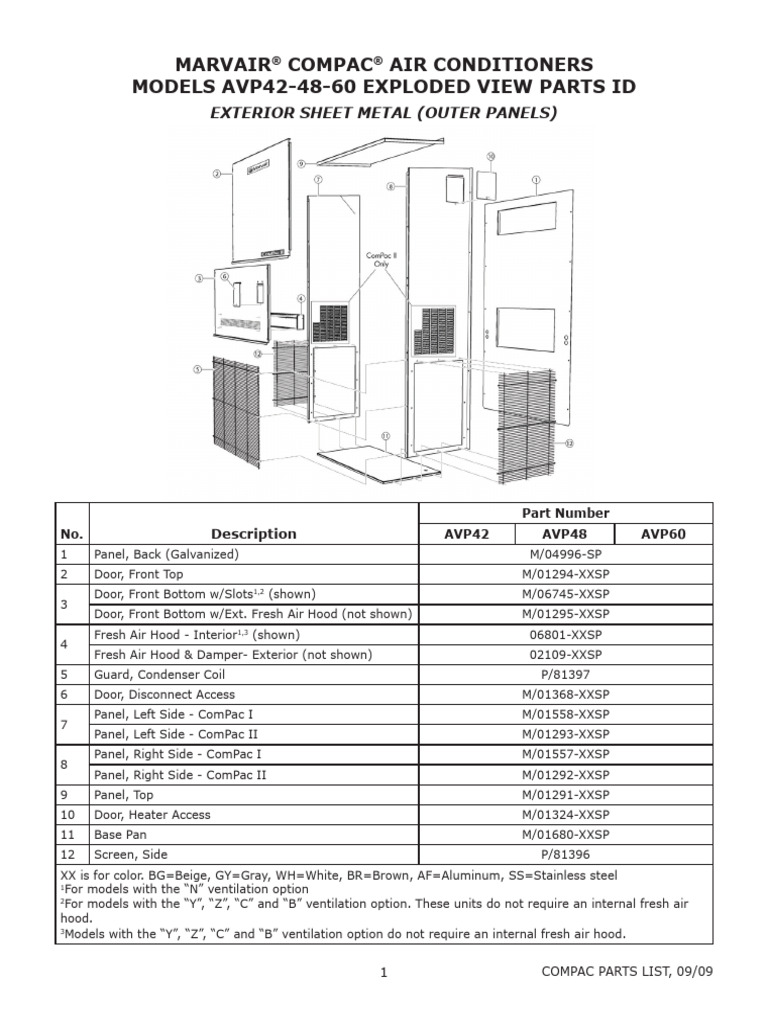 Marvair Conpac AVP 42 48 60 Parts List PDF Air Conditioning