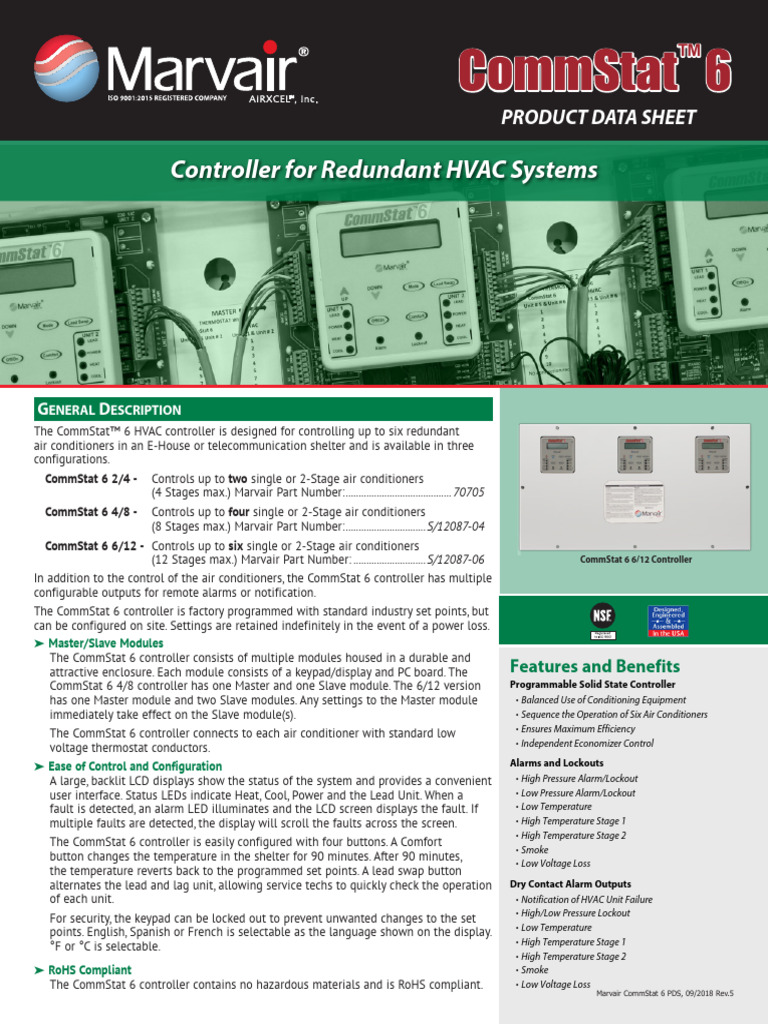 CONTROLADOR Marvair Commstat6 PdsRev5 PDF Relay Thermostat