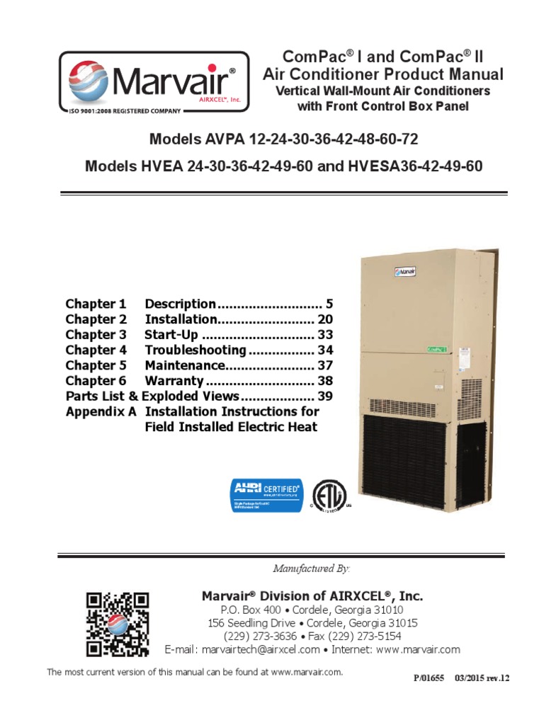 Marvair ComPac I and ComPac II Air Conditioner Product Manual PDF