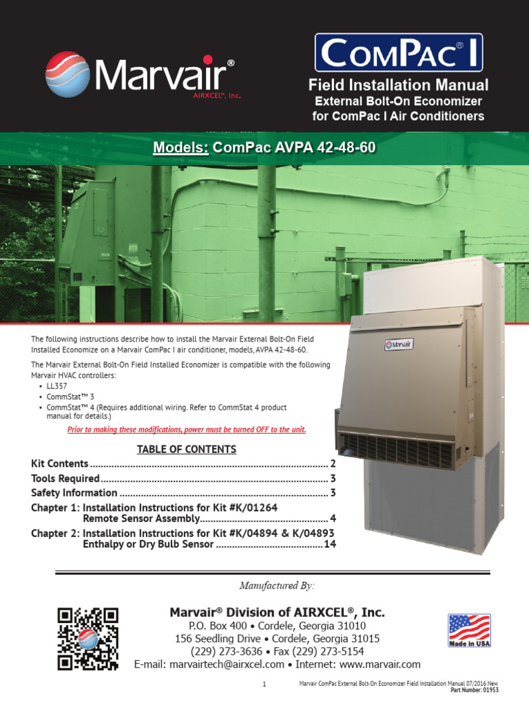 Marvair Compac External Economizer Installation Manual PDF Screw Door