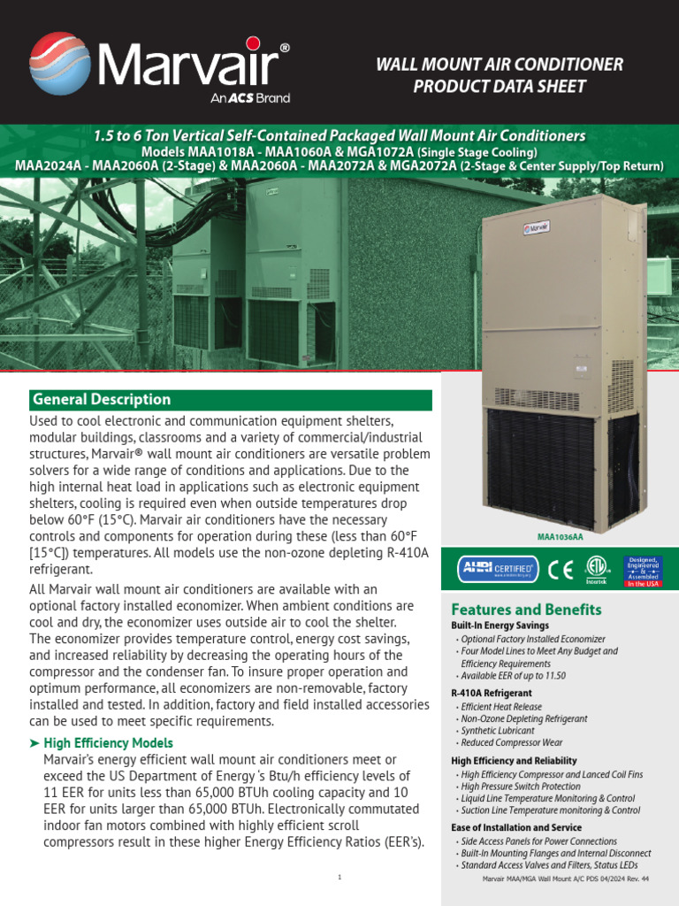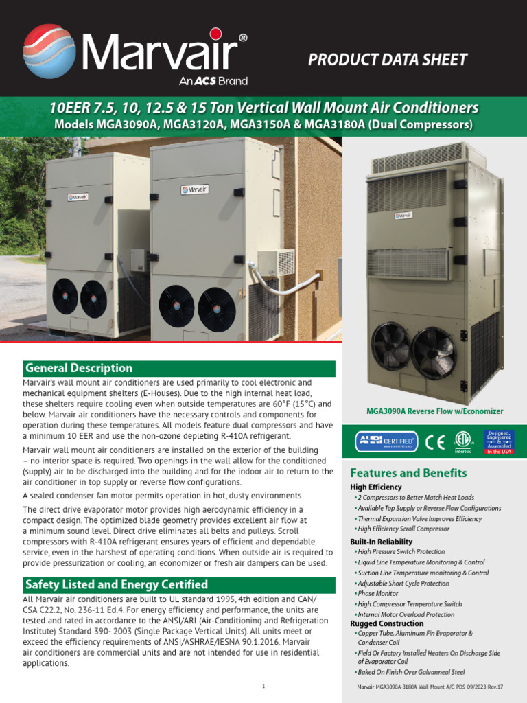 Marvair MGA30903180 WallMount AC PDS 092023 Rev17 PDF Air