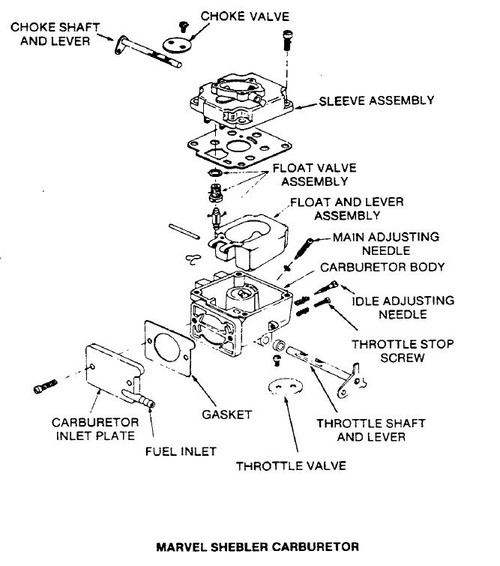 PARTS LIST FOR MARVELSCHEBLER CARBURETOR