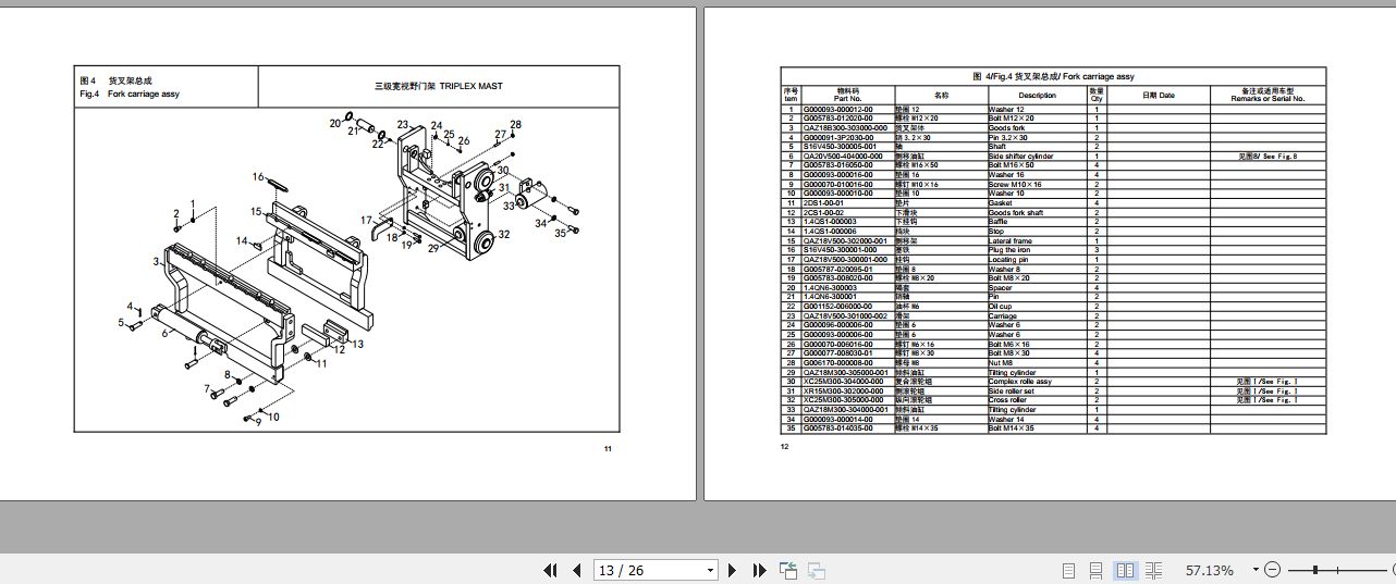 Hangcha Forklift 1.5t1.8t Mast Parts Catalog