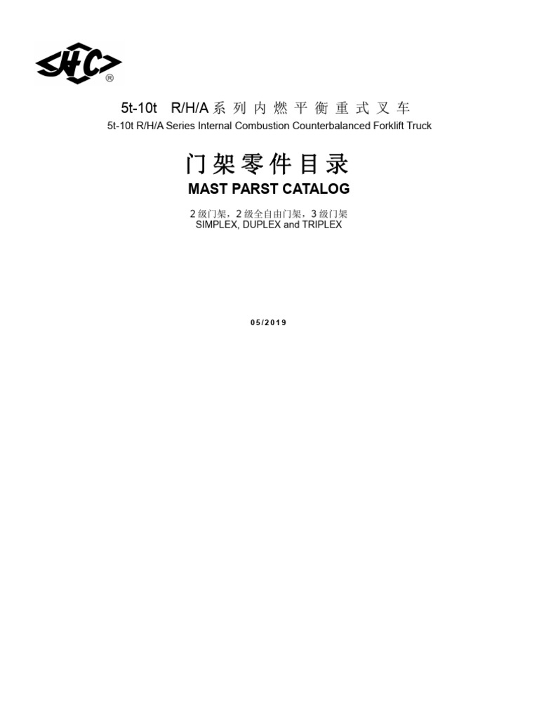 5.010.0t R H A Series IC Forklift Mast Parts Catalog 2019.05 Ok PDF
