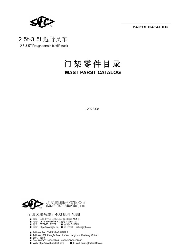 Hangcha Forklift Mast Parts Catalog 2015