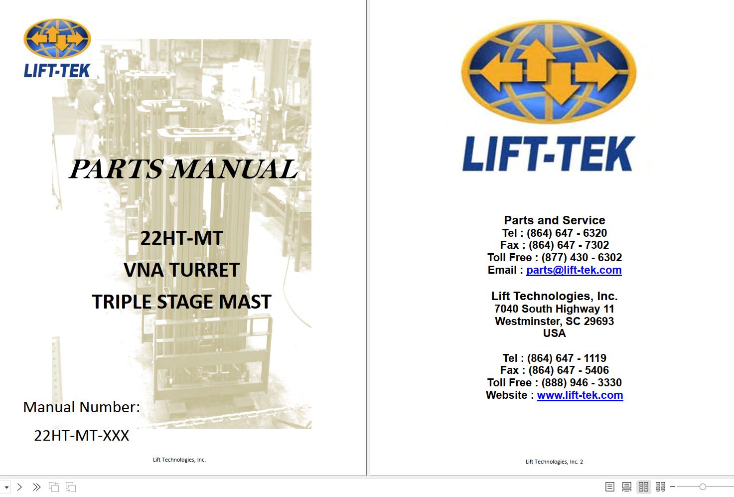 LiftTek 100DMT Triple Mast Parts Catalog 235360R16 PDF