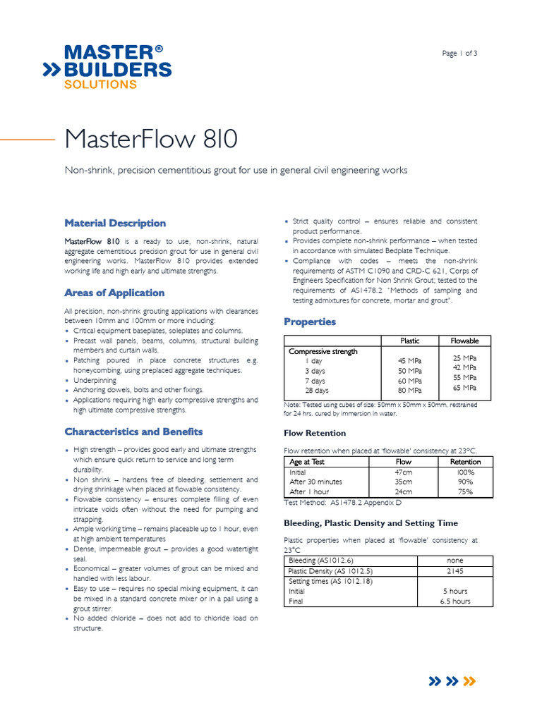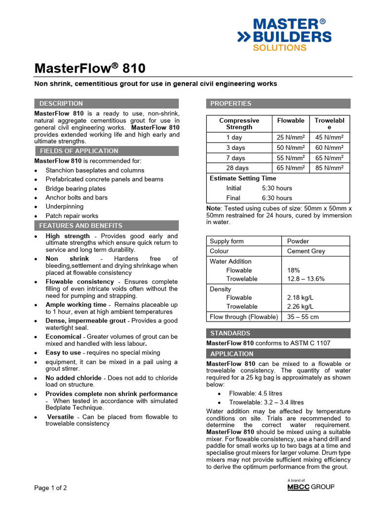 Masterflow 810 Tds PDF Concrete Materials