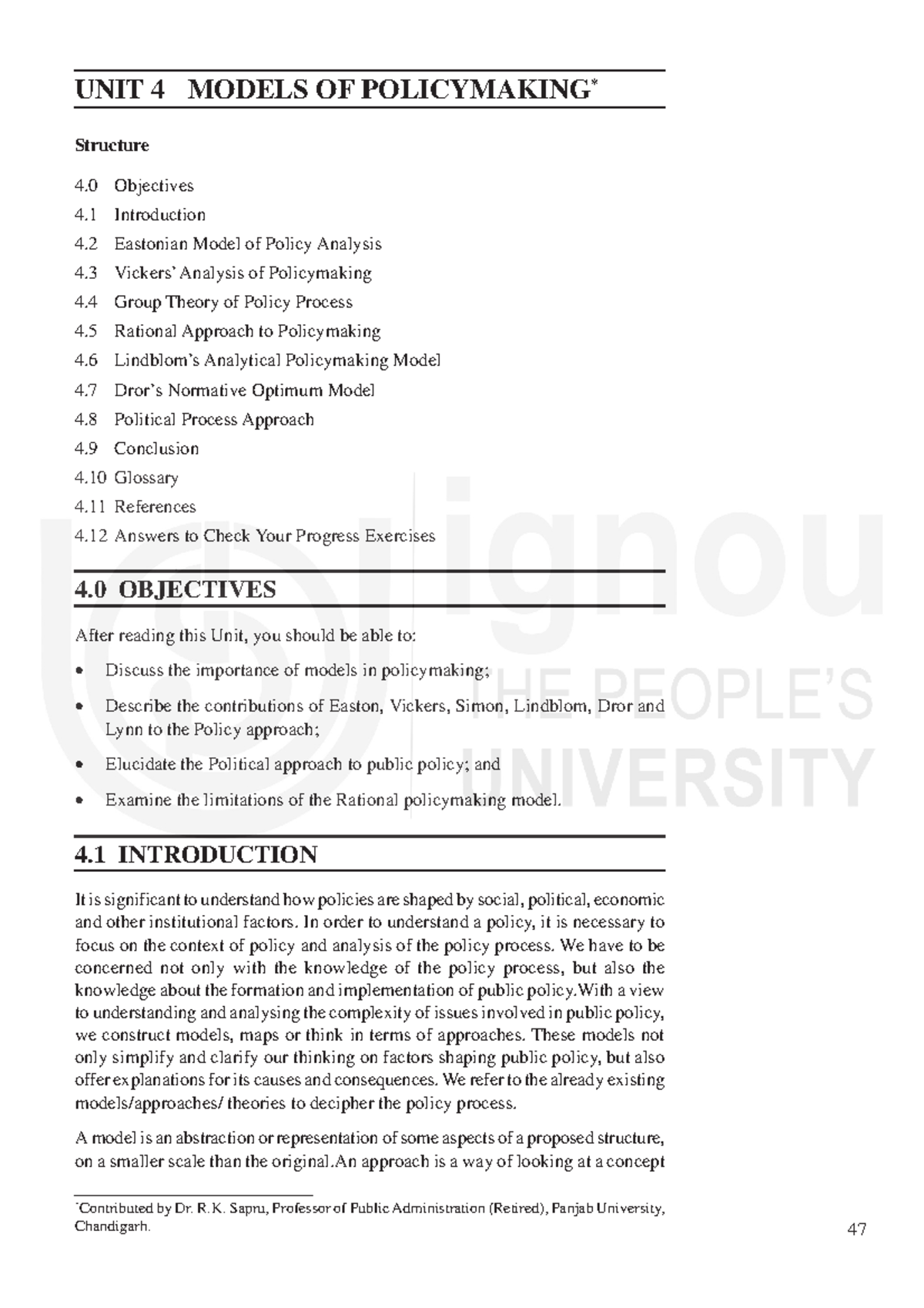 Unit4 Modela of public policy Models of Policymaking *Contributed