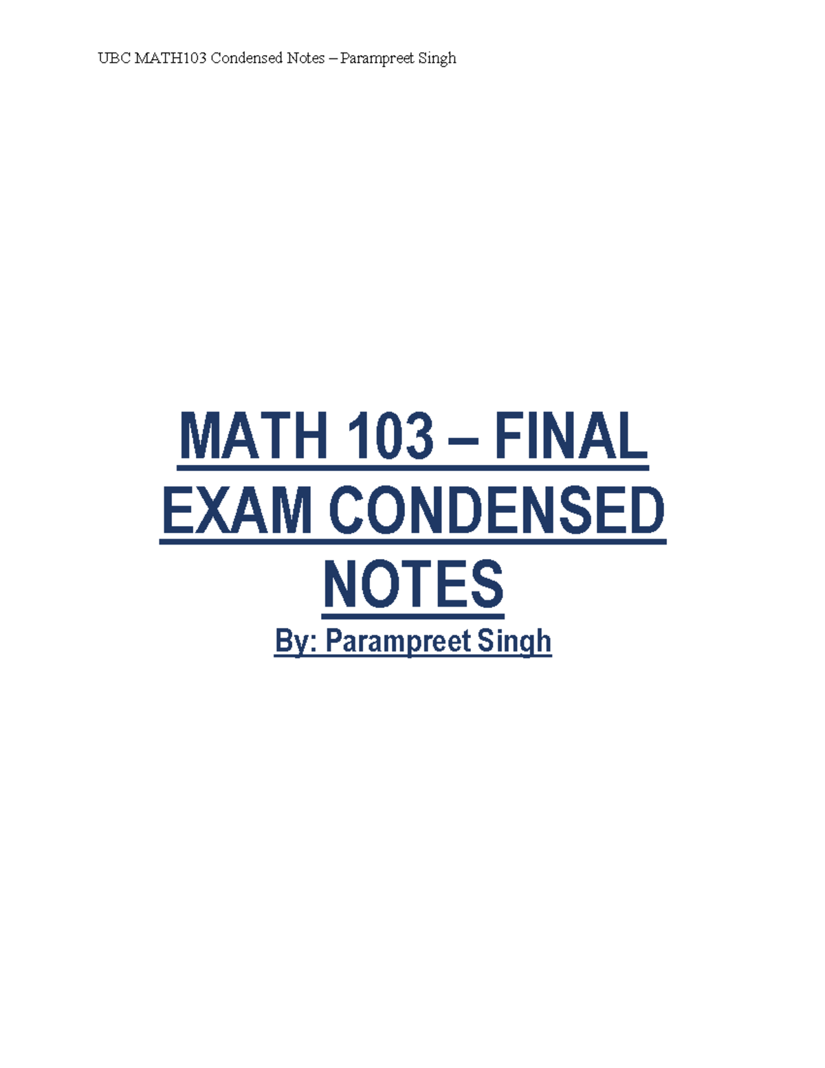 Math 103 ALL Concepts Summarized MATH 103 FINAL EXAM CONDENSED