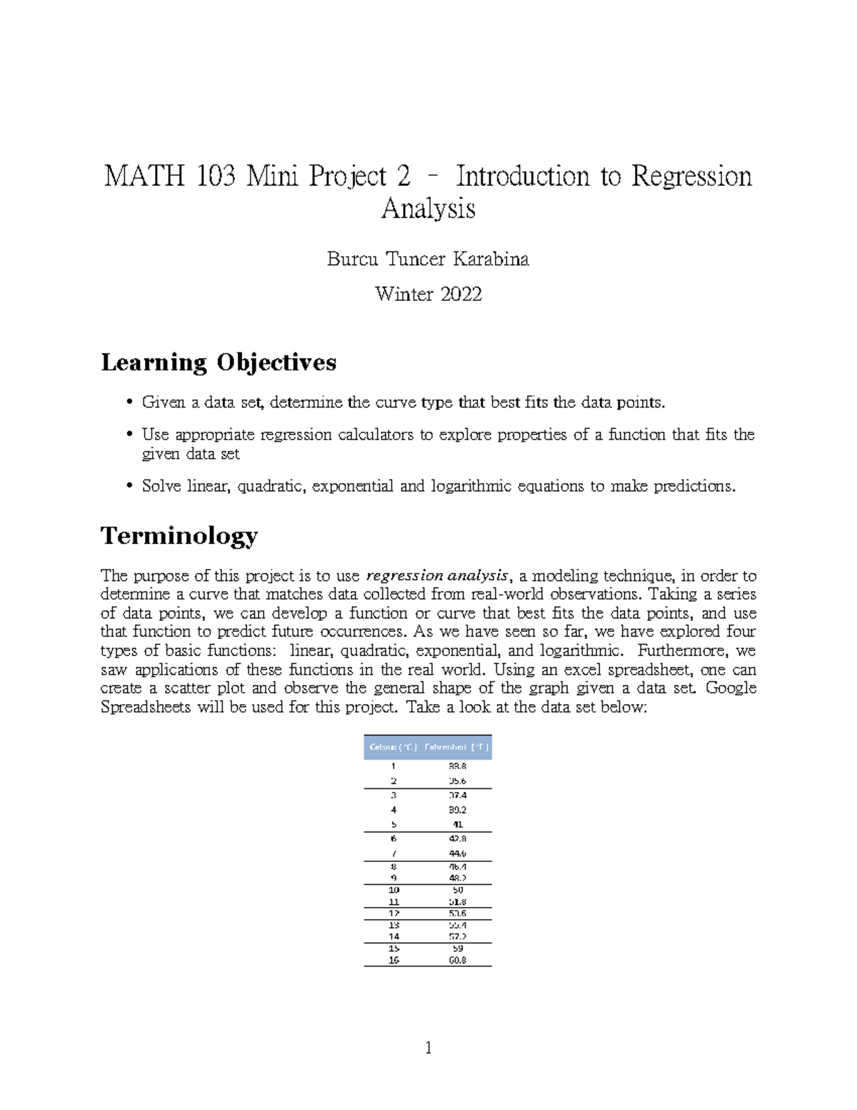 Project 1, solution reviews good for exam MATH 103 Mini Project
