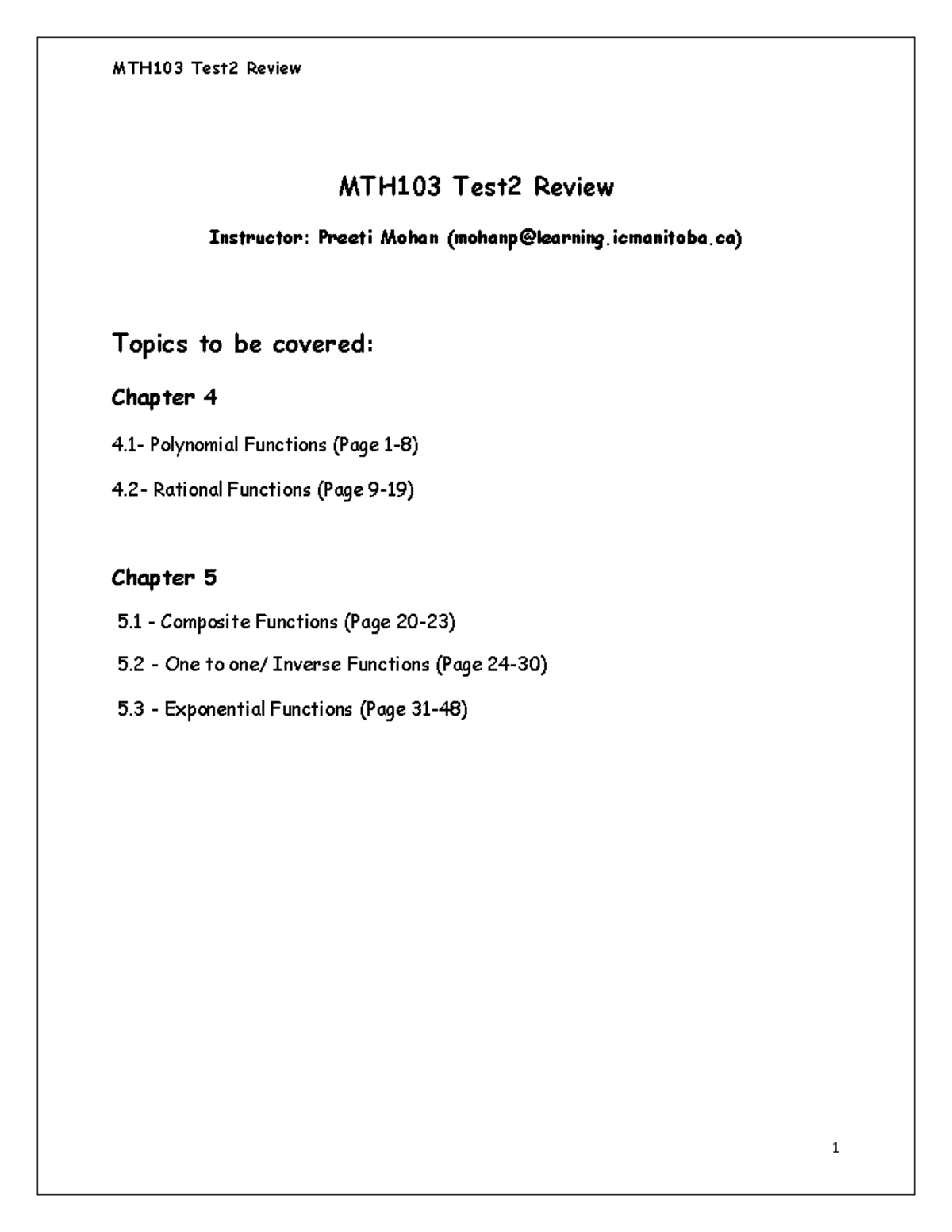 MATH 103 gfhgfhf MTH 103 Test2 Review Instructor Preeti Mohan