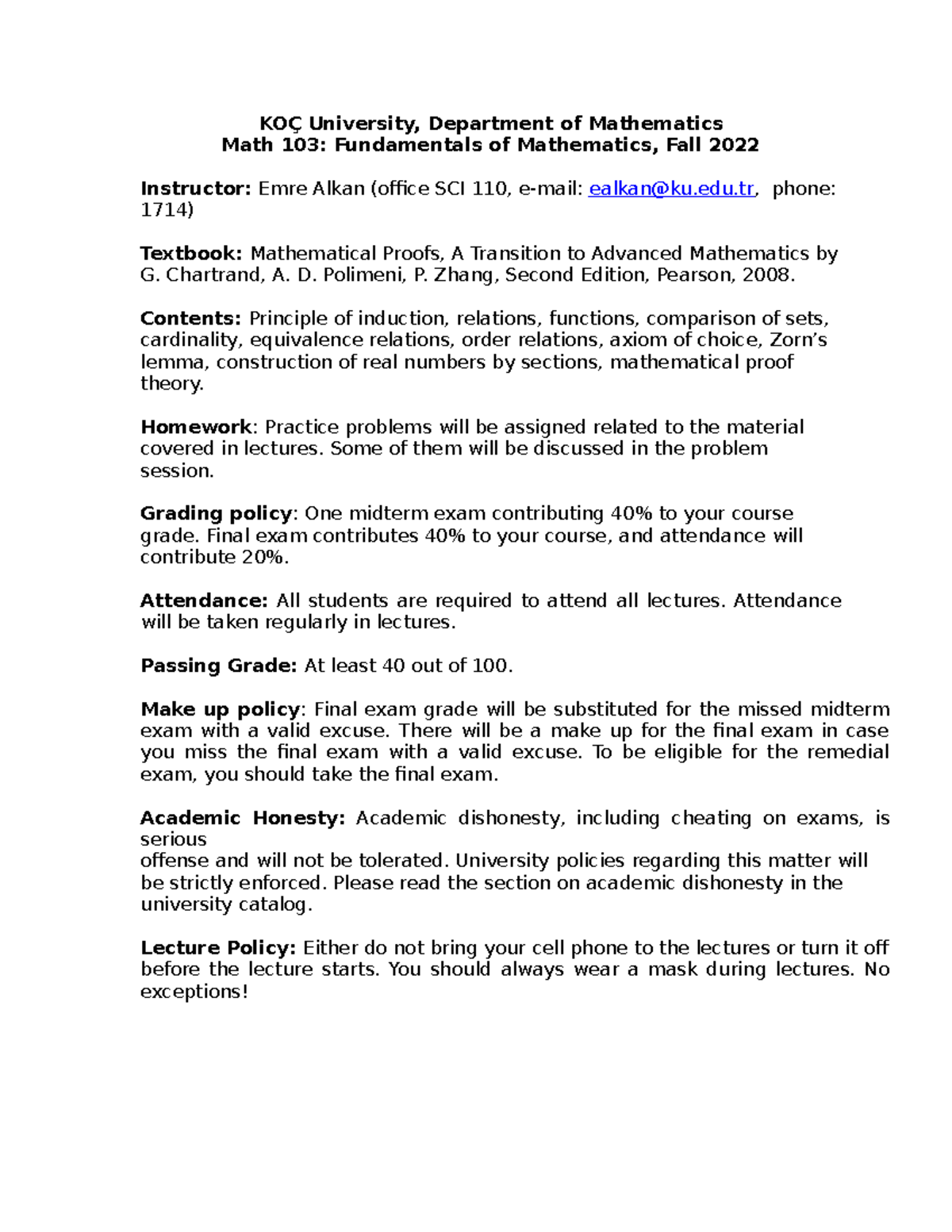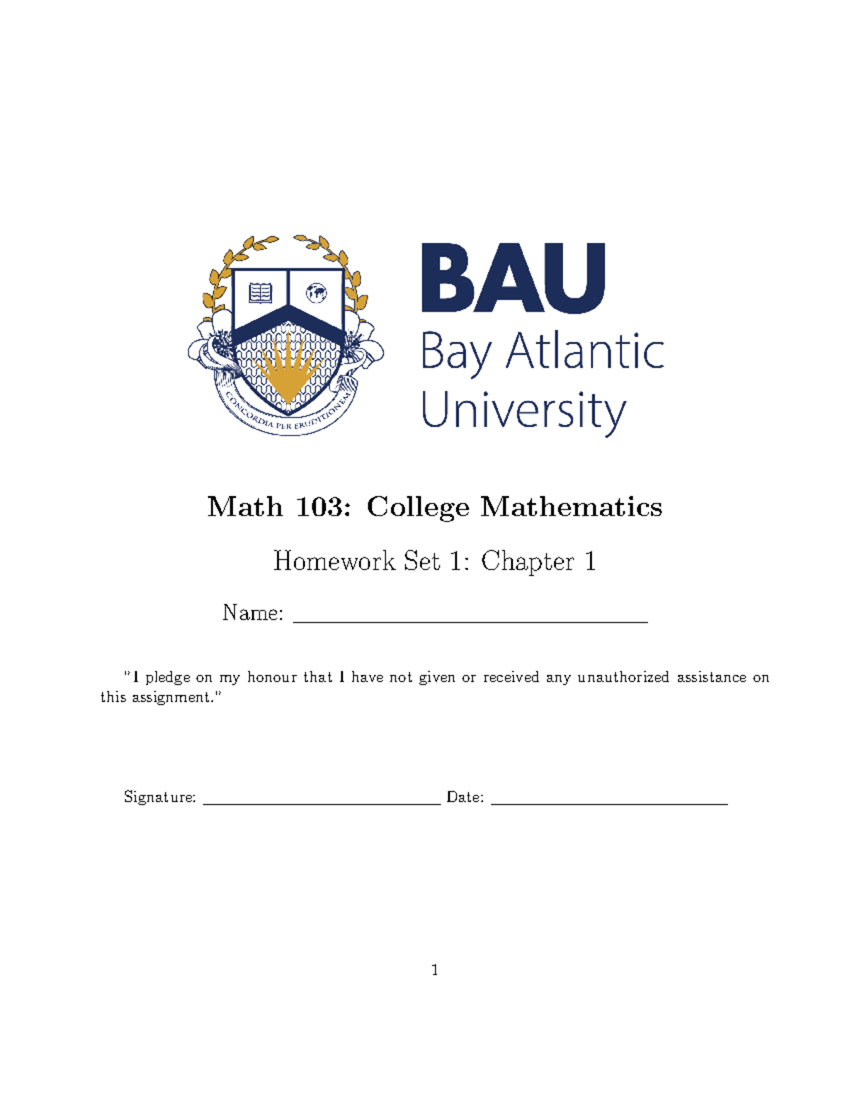 Math 103 HW 1 Math 103 Exercise Math 103 College Mathematics