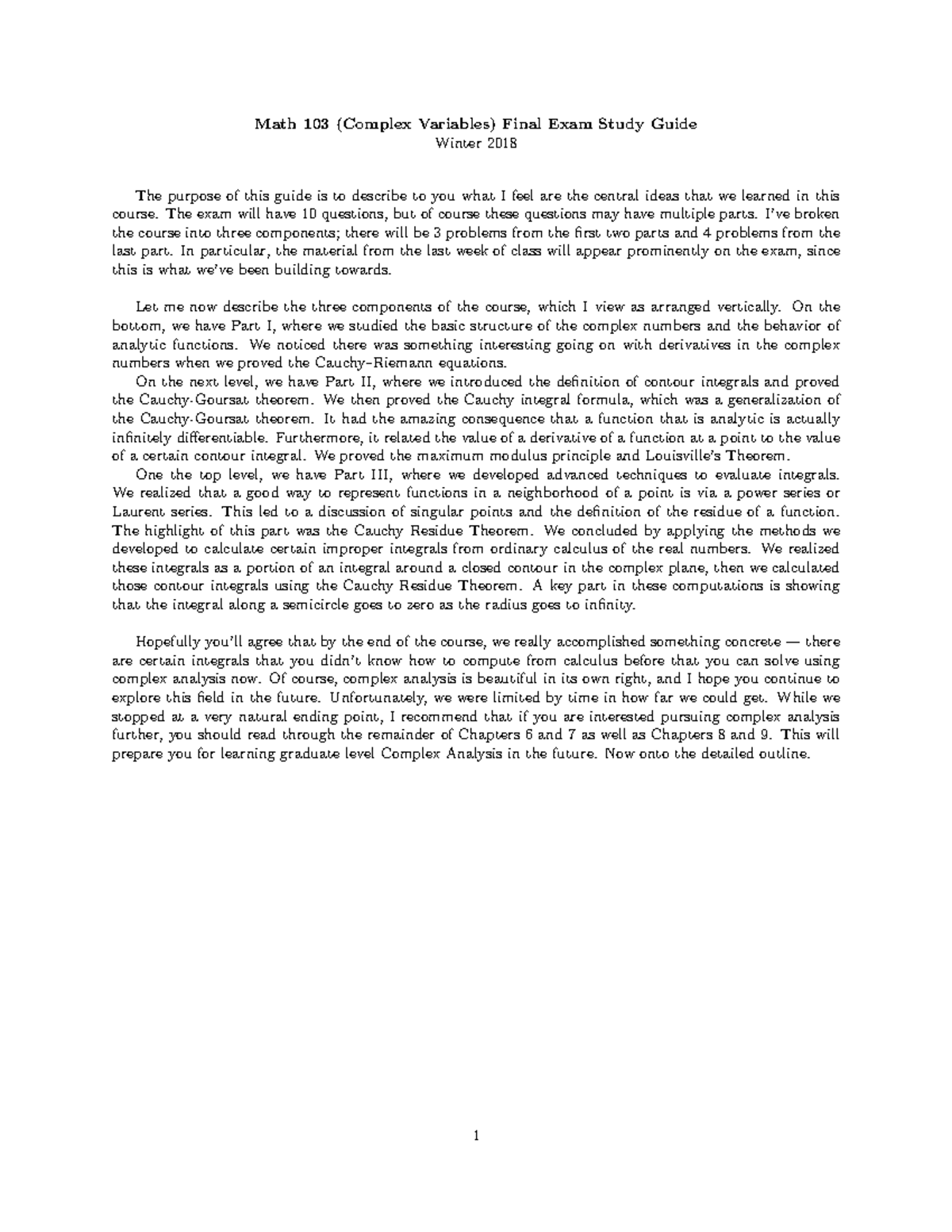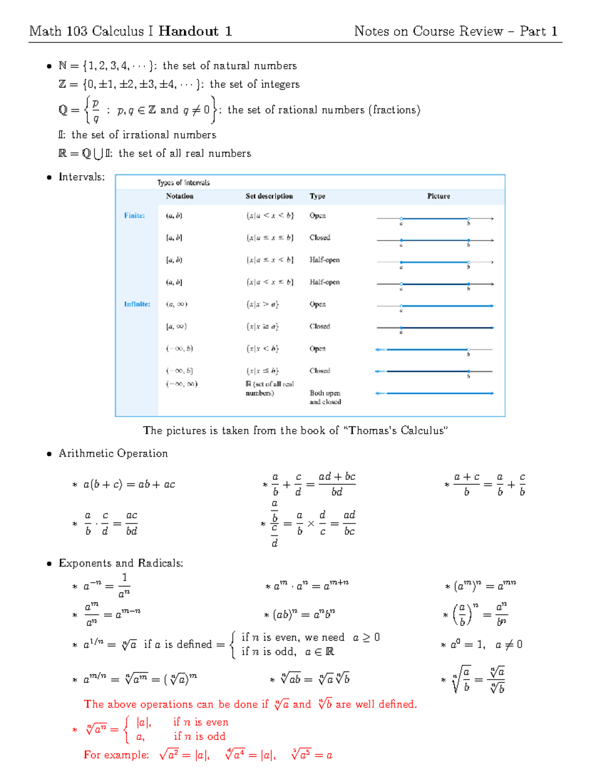 1 Math103 Handout Course Review Part1 Math 103 Calculus IHandout 1