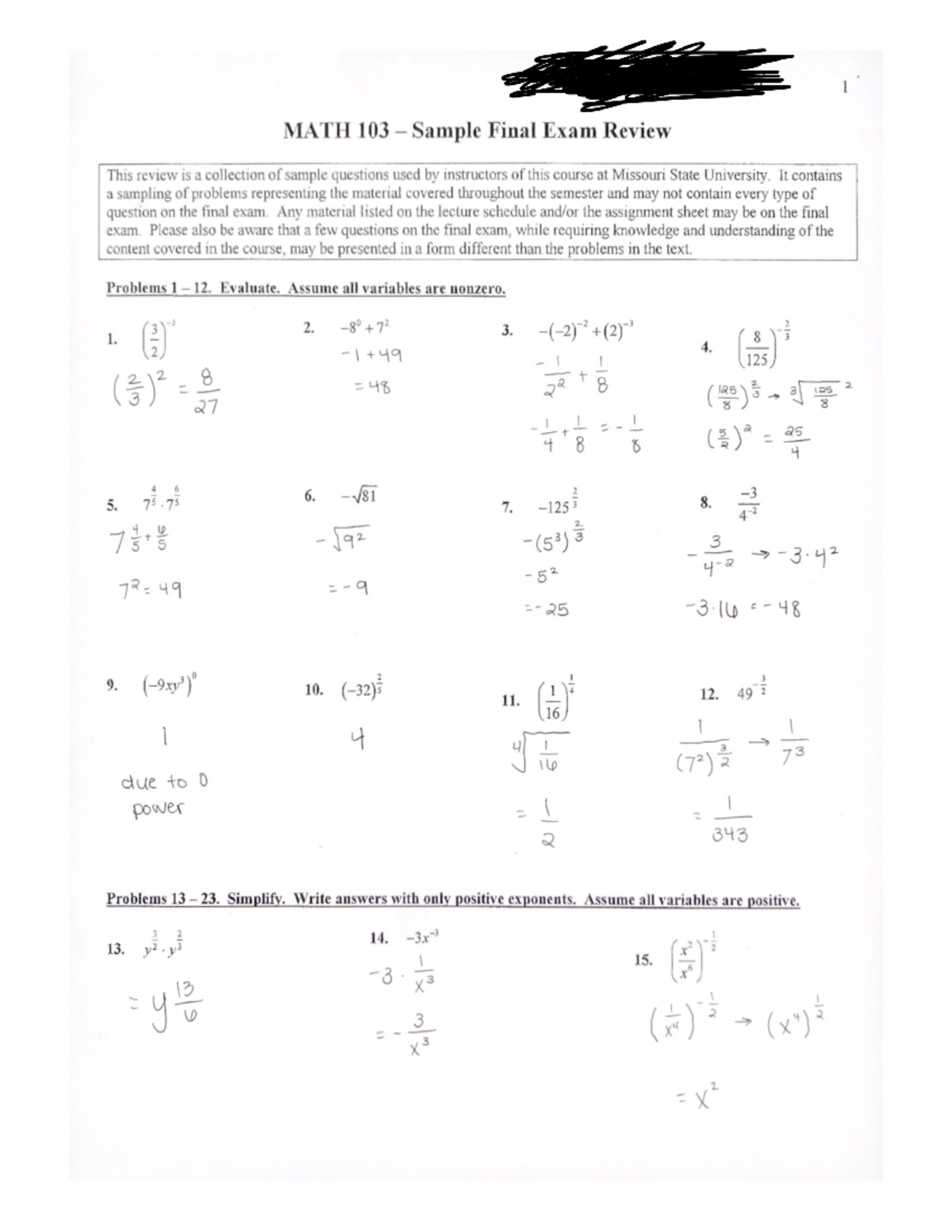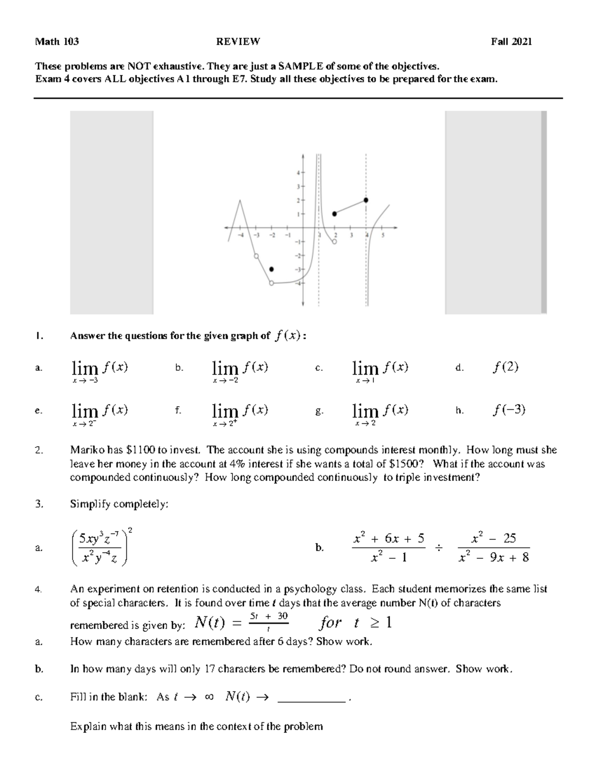 Math103finalstudyguide Math 103 Variables) Final Exam Study