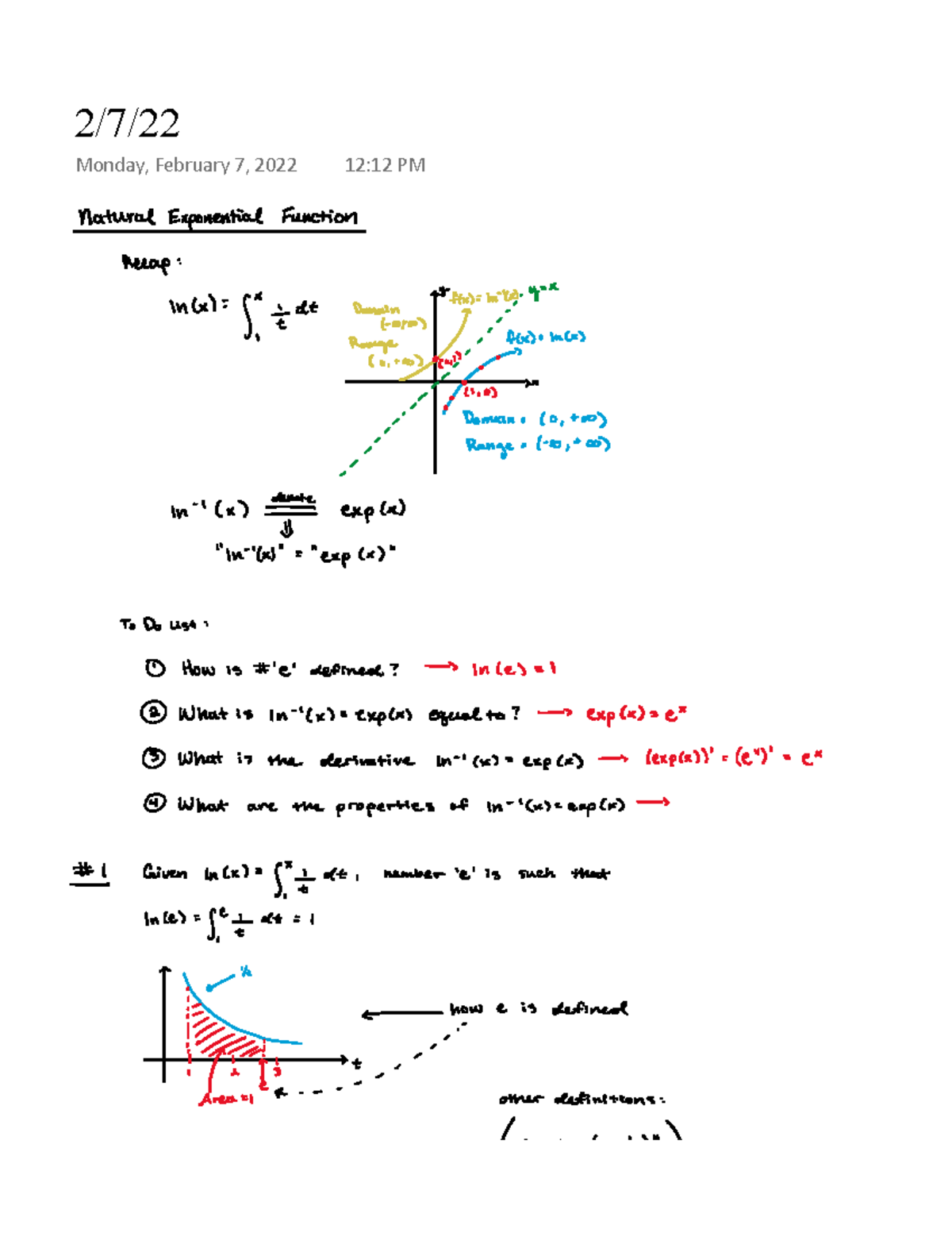 Cal Poly MATH 182 Calculus 2 Notes 13 Natural Exponential Function