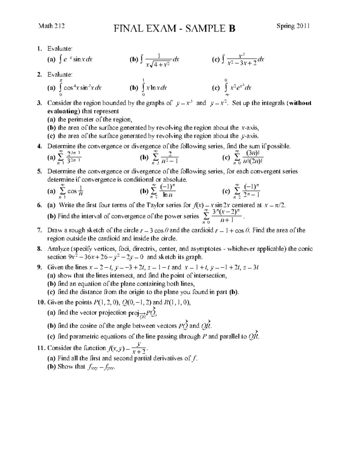 Old Dominion University, Math 212, Sample Final B, 2011 Math 212
