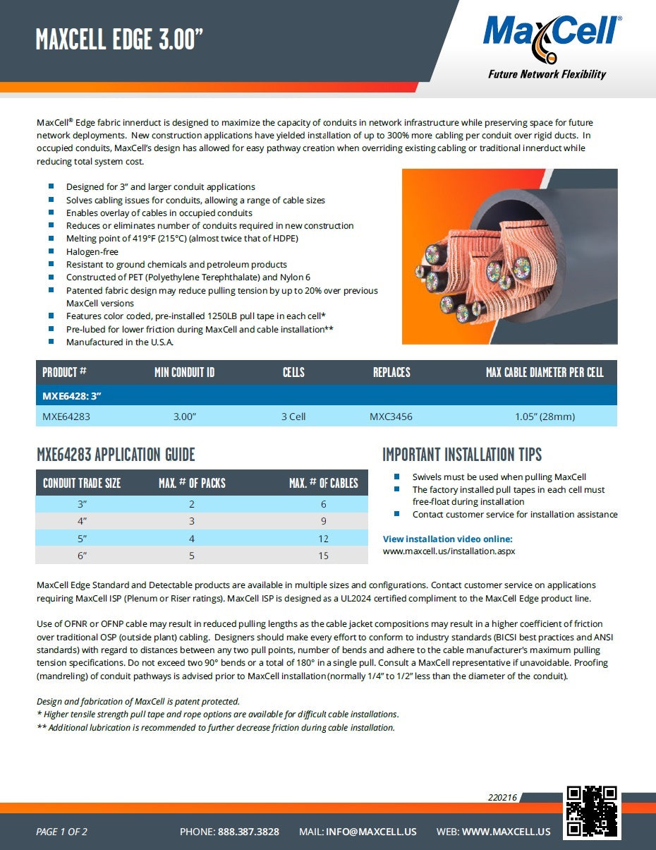 MaxCell Edge Innerduct MXE64283BK, 3" 3 Cell Standard, Black with 1250