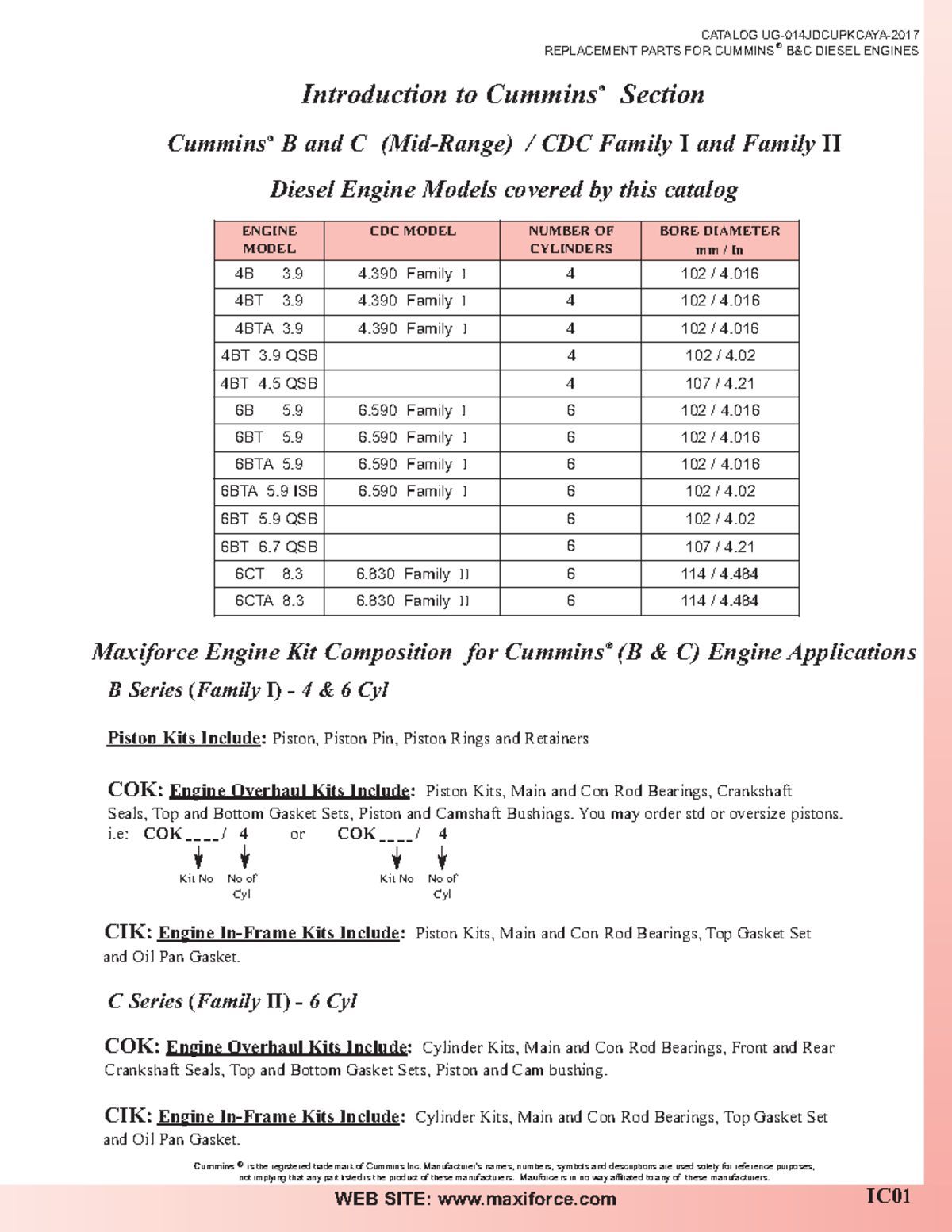 Maxiforce Catalog Cummins 4BT 3 QSB 4 102 / 4. 6 Introduction to