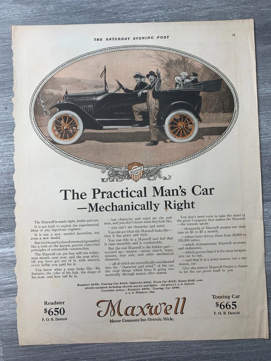 1915 Maxwell Touring Town Roadster Cabriolet Sales Brochure Catalog