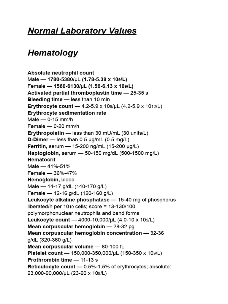 Normal Laboratory Values PDF Blood Plasma Red Blood Cell
