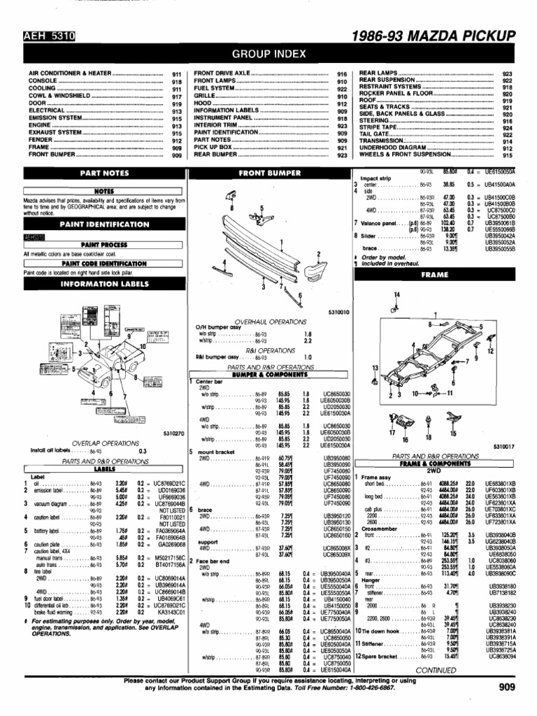 Catálogo de Partes MAZDA B2200 1989 AutoPartes y Refacciones