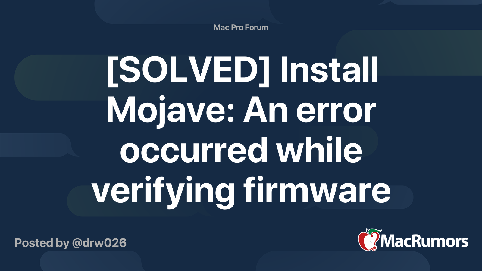 [SOLVED] Install Mojave An error occurred while verifying firmware