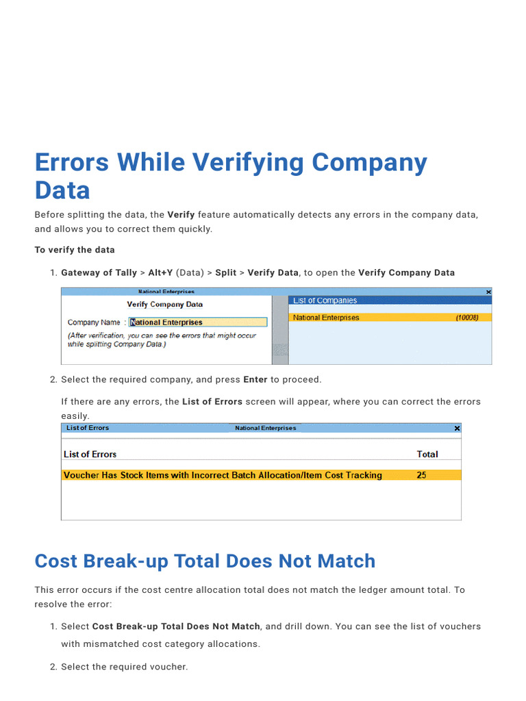 Errors While Verifying Company Data PDF Voucher