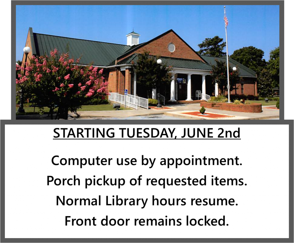 Library resumes normal hours June 2, 2020 McCormick County Library
