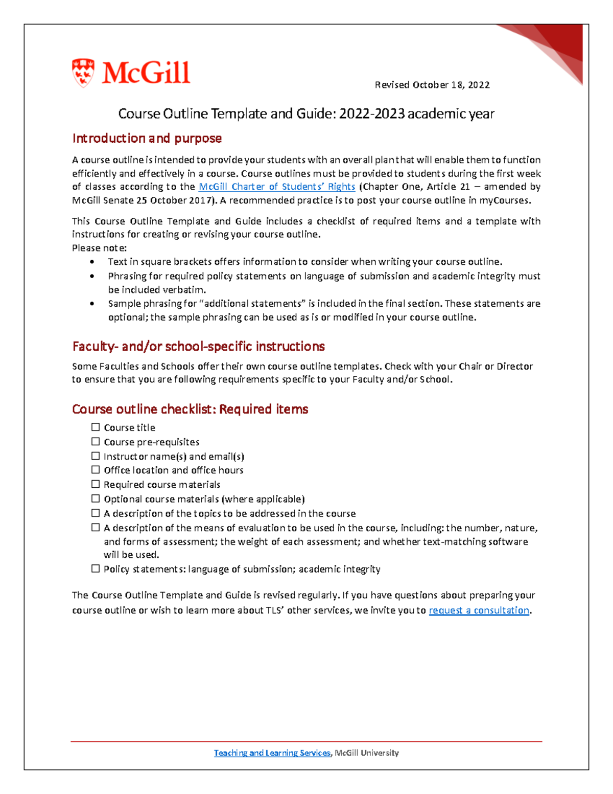 Mcgill course work Revised October 18 , 202 2 Teaching and Learning
