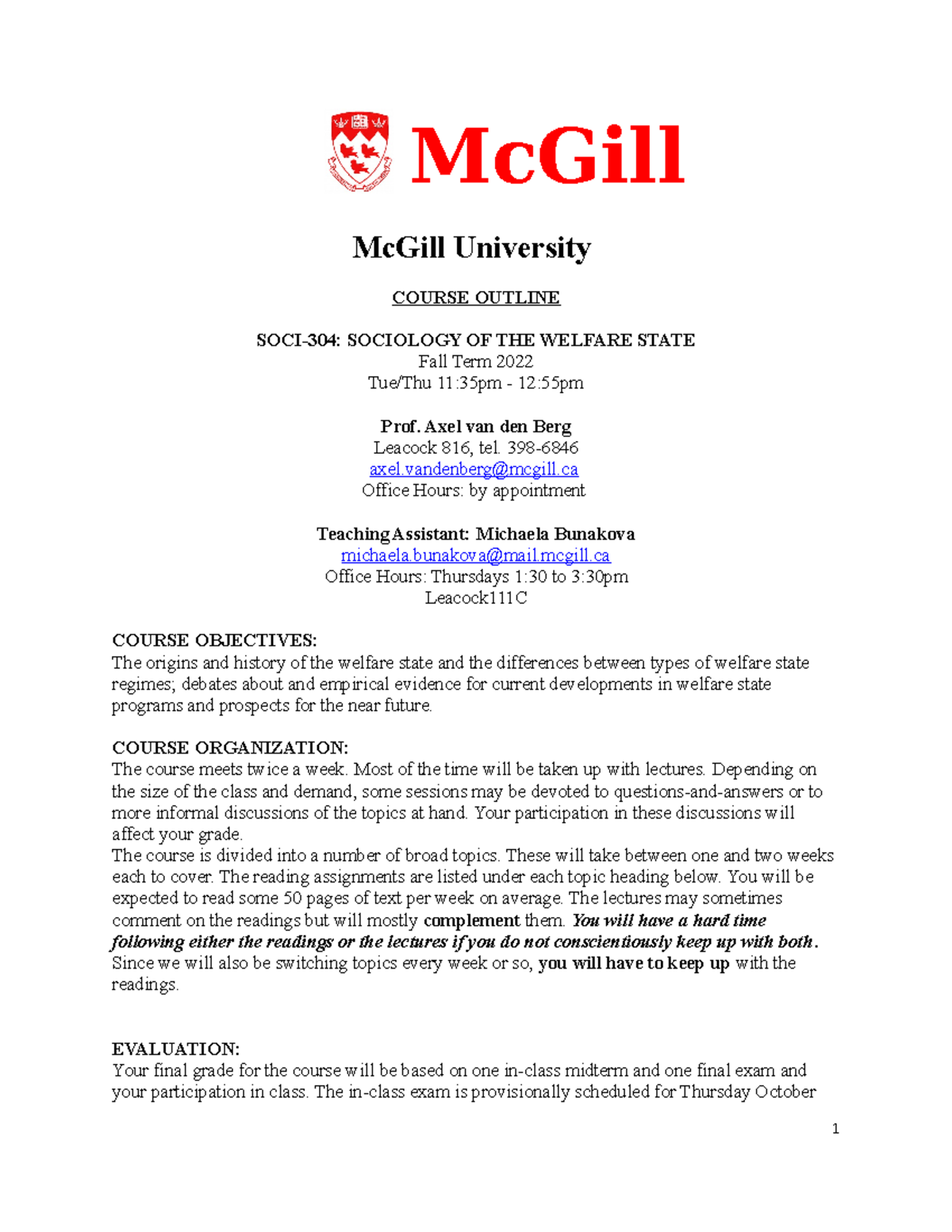 Course Outline SOCI304.2022 Copy McGill McGill University COURSE