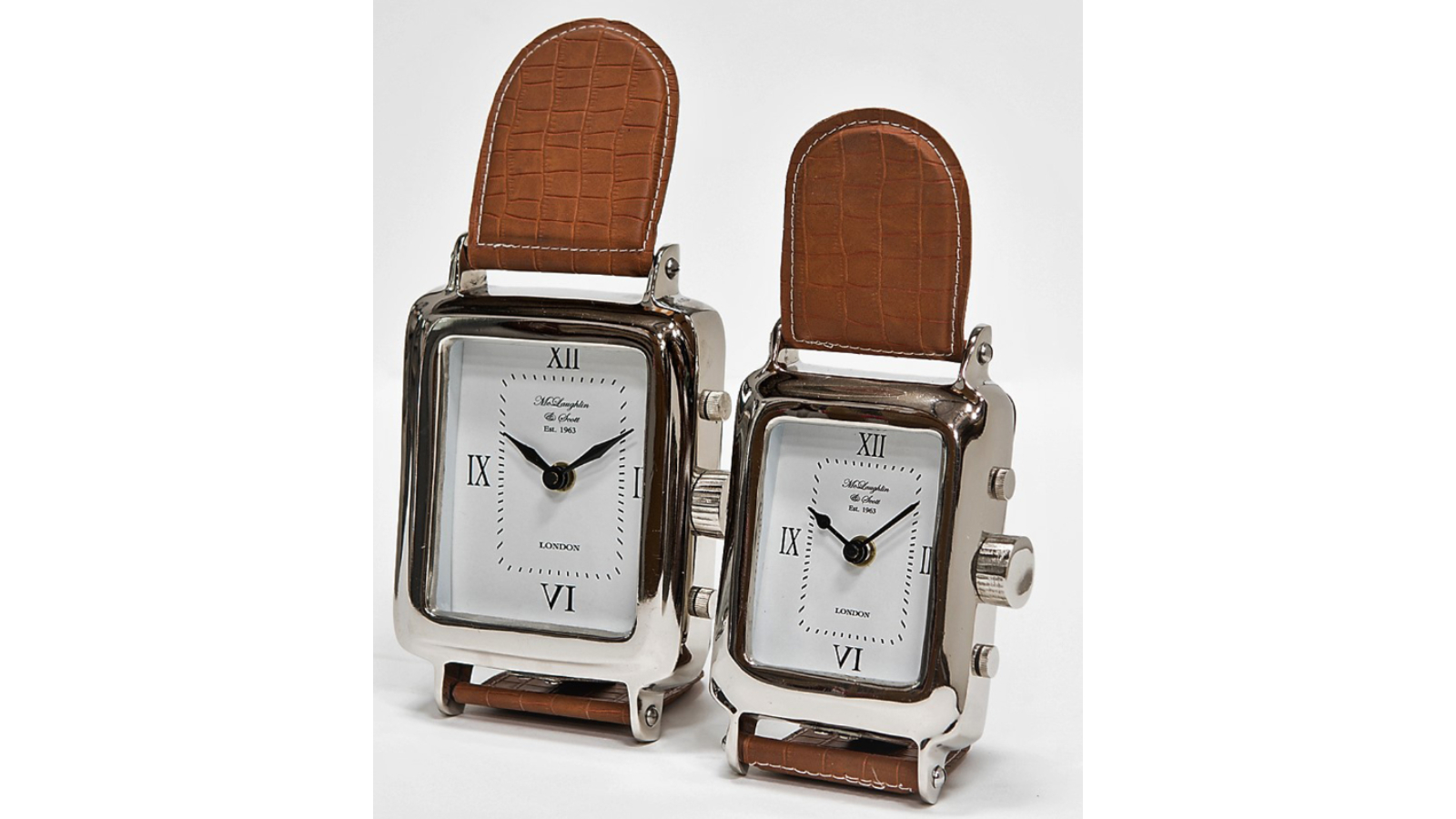 SSH Collection Mclaughlin and Scott Tall Desk Clock with Brown Leather