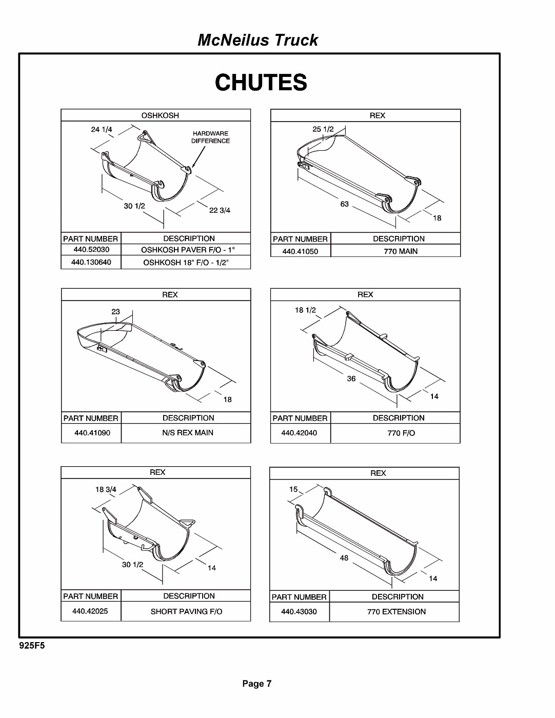 MPParts McNeilus 151650ALWT Extension ChuteAluminum With Tabs