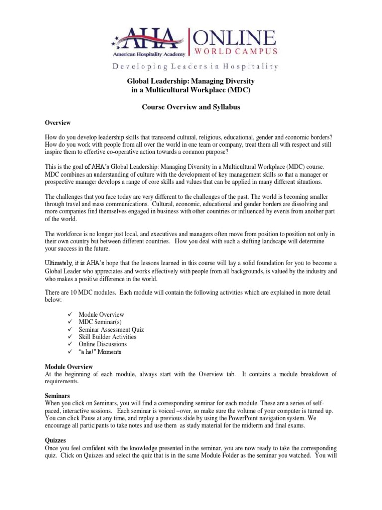 Global Leadership Managing Diversity in A Multicultural Workplace (MDC