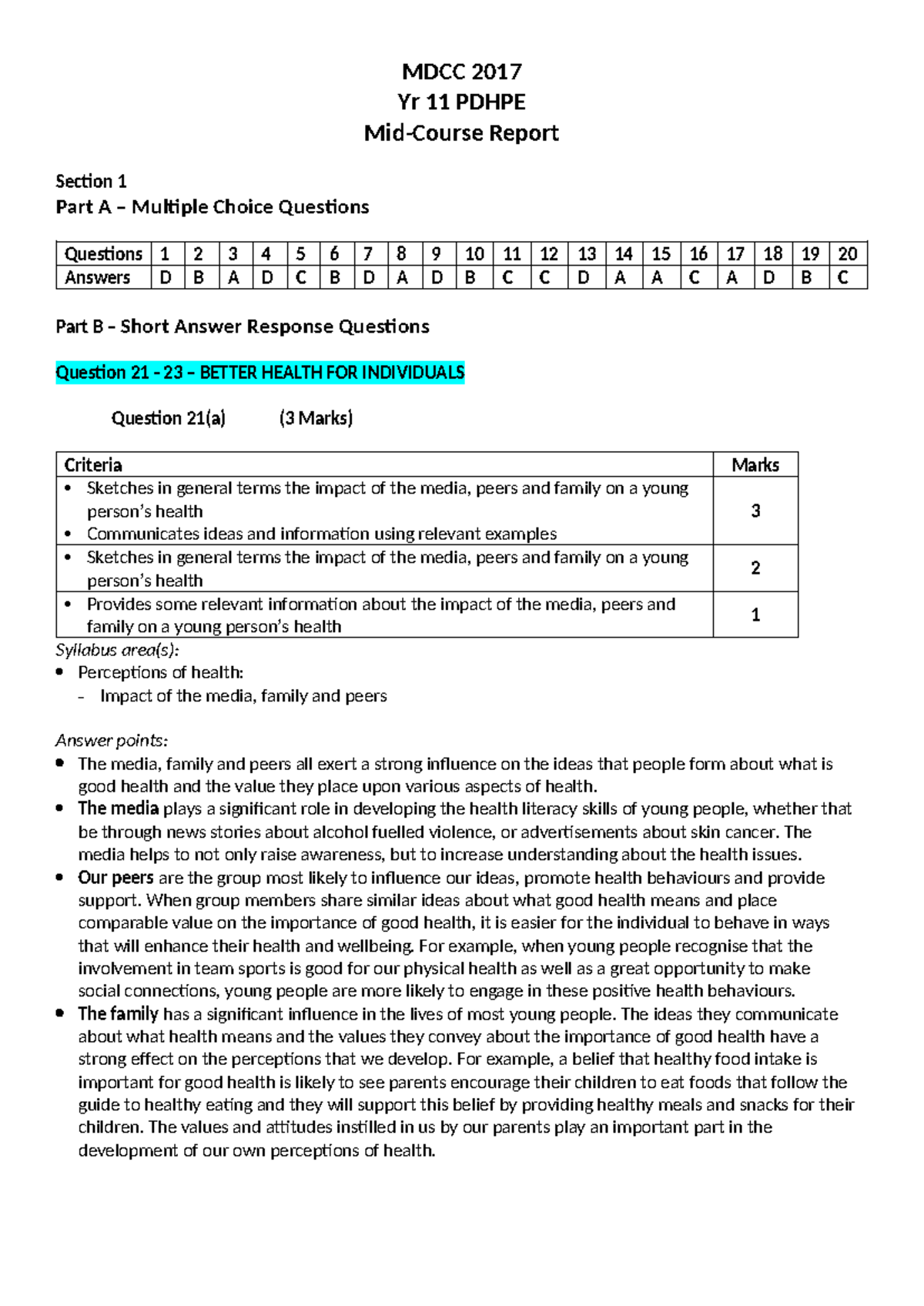 Yr 11 2017 mid course report 1 MDCC 2017 Yr 11 PDHPE MidCourse