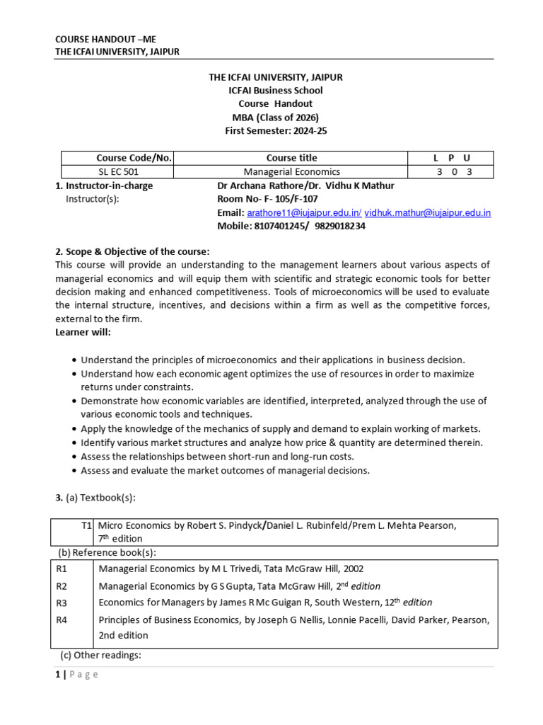 ME Course Handout 2024 Download Free PDF Monopoly Perfect Competition