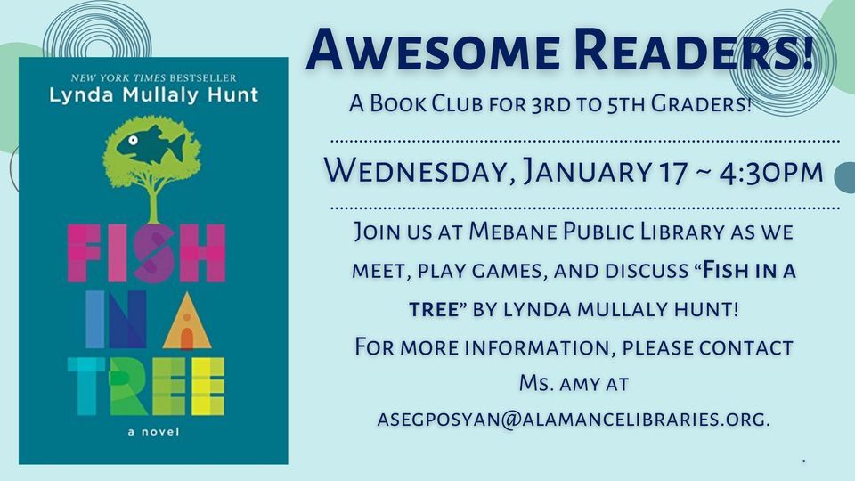 Awesome Readers Book Group, Mebane Public Library, January 17 2024